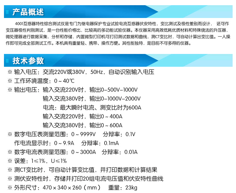 互感器特性綜合測試儀內置微型打印測試數(shù)據(jù)和曲線重量輕